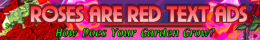 ROSES ARE RED TEXT ADS We Have: Super Solos Solo Ads Premium Ads Full Page Login Ads Hot Links Banner Ads Surf For Points Email Your Referrals And A Whole Lot More! New Members Use Code: newmember for: 10,000 Points, 4 Solos, 4 Banners, 4 Traffic Links, 1 Login Ad.
